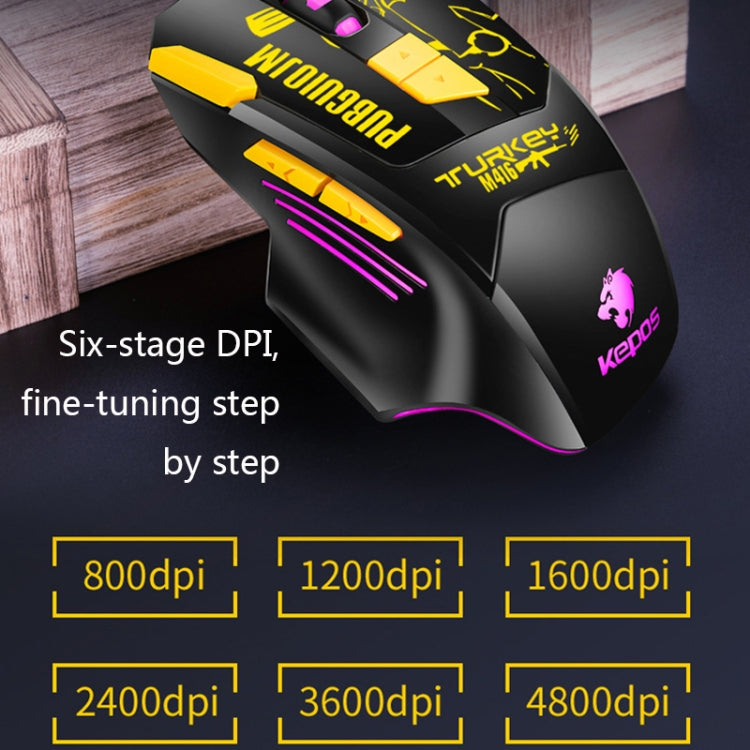Kepos M416 8 Keys 4800 DPI Computer Free Drive Wired Gaming Mouse, Cable Length: 1.6m(Yellow)